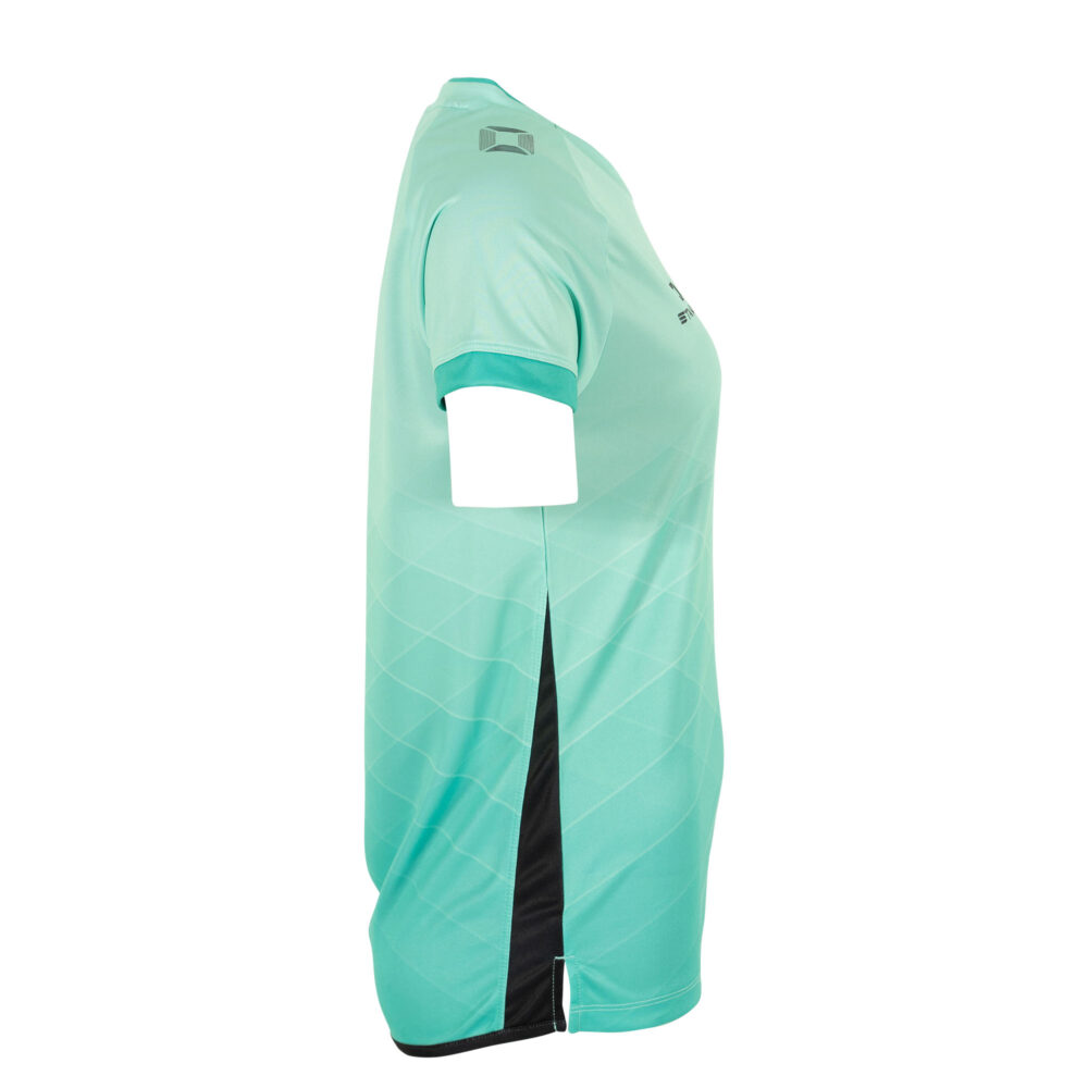 The womens shirt is fully sublimated, has double-stitched seams and is made of 100% recycled polyester with a ClimaTec finish. The shirt features a rounded longer back and the Raglan sleeve inserts provide sufficient freedom of movement. There is a Breathable Mesh structure on the inside and sides ensures optimal sweat drainage. The shirt has Stanno logos on the shoulders and right chest.